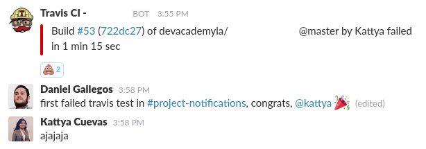 In our Slack team we get messages when our builds have completed. These can either be passing… or failing. When our builds fail, we normally laugh at each other about it:
