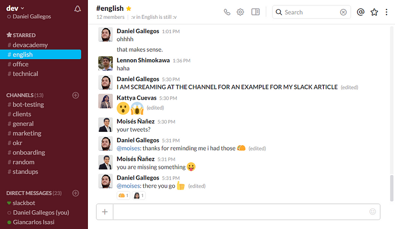 If you’re as busy as we are, it’s much easier to write something down where you can be reminded of it later instead of listening to a whole bunch of people yap at you all at once. It’s where instant messaging really shines — many people can be talking at once without having to pause or slow down. Messages can be as long or as short as you’d like, and you can have long, meaningful discussions that can be interactive and not just one sided. Slack makes this experience fun and exciting by adding reactions to your posts. This makes everything more lighthearted by letting everyone know your feelings on what you said.